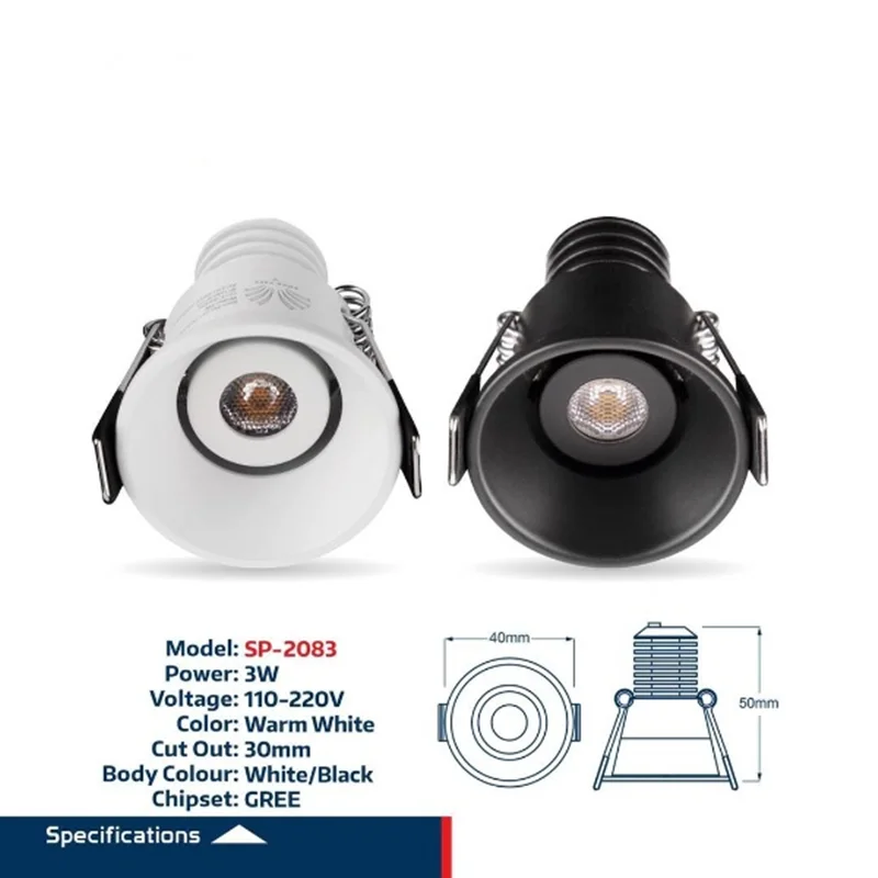 چراغ دارک لایت 2083 با توان 3وات و قطر برش 3سانت و ارتفاع چراغ 5 سانت تولید شده و عمق زیاد چراغ باعث کاهش خیرگی(ANTI GLARE) و افزایش کیفیت نور چراغ و گزینه ایده الی برای نصب در پروژه های مسکونی،تجاری،اداری و هتل ها،رستورانها و کافیشاپها میباشد.