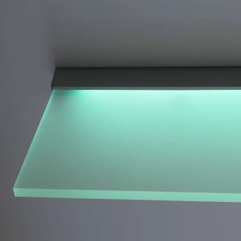 به علت تنوع شیشههای موجود در بازار این محصول بدون شیشه عرضه میشود. شلف نوری در حقیقت یک پروفیل نوری است که شیشه بر روی آن قرار میگیرد و نور را در سه جهت پخش میکند، قیمت آن بر حسب متر طول بوده و شما میتوانید طبق سلیقه خود رنگ نور را انتخاب کنید. این محصول برای راه اندازی احتیاج به ترانس 12 ولت دارد و برای نصب بر روی دیوار یا به عنوان طبقه از بست اتاژور یا خارطبقه میتوانید استفاده کنید.