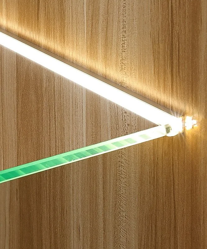 لامپ گلس قابل سفارش در سایزهای مختلف میباشند و شما زمان سفارش میتوانید از سنسورهای مخفی، کلیدهای معمولی و کلیدهای دیمردار برای تنظیم روشنایی شلفها استفاده نمایید. برای مثال در آشپزخانه، سنسور مخفی در زیر صفحه کابینت یا بدنه کابینت قرار میگیرد و با لمس کردن محل قرارگیری سنسور از روی کابینت میتوان شلف نوری را خاموش روشن یا نور آن را تنظیم کرد.